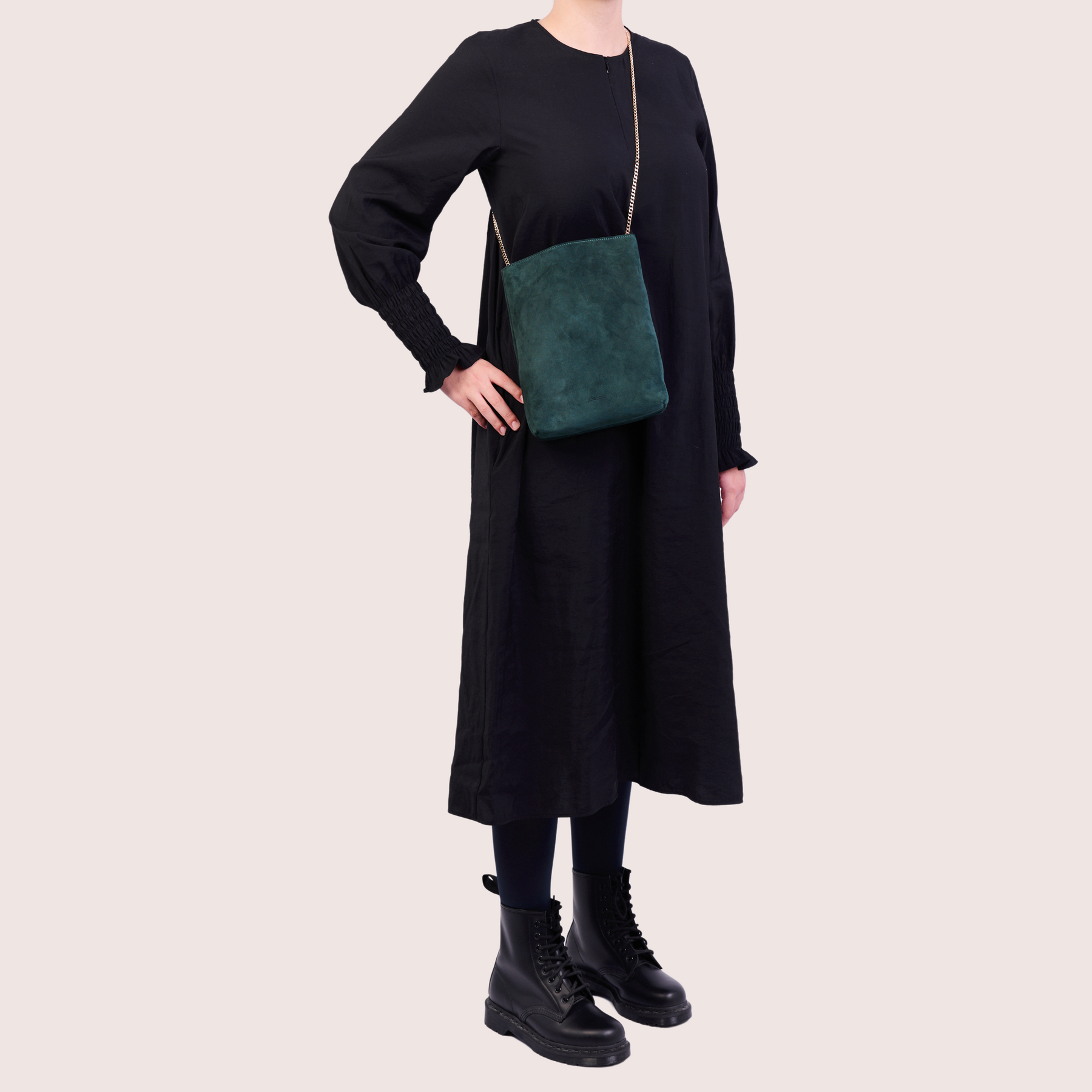 This satchel-style bag comes with a sliding Italian-made chain (110 cm), and adapts to your mood: worn crossbody, on the shoulder, or simply held by hand as a clutch — depending on the moment.