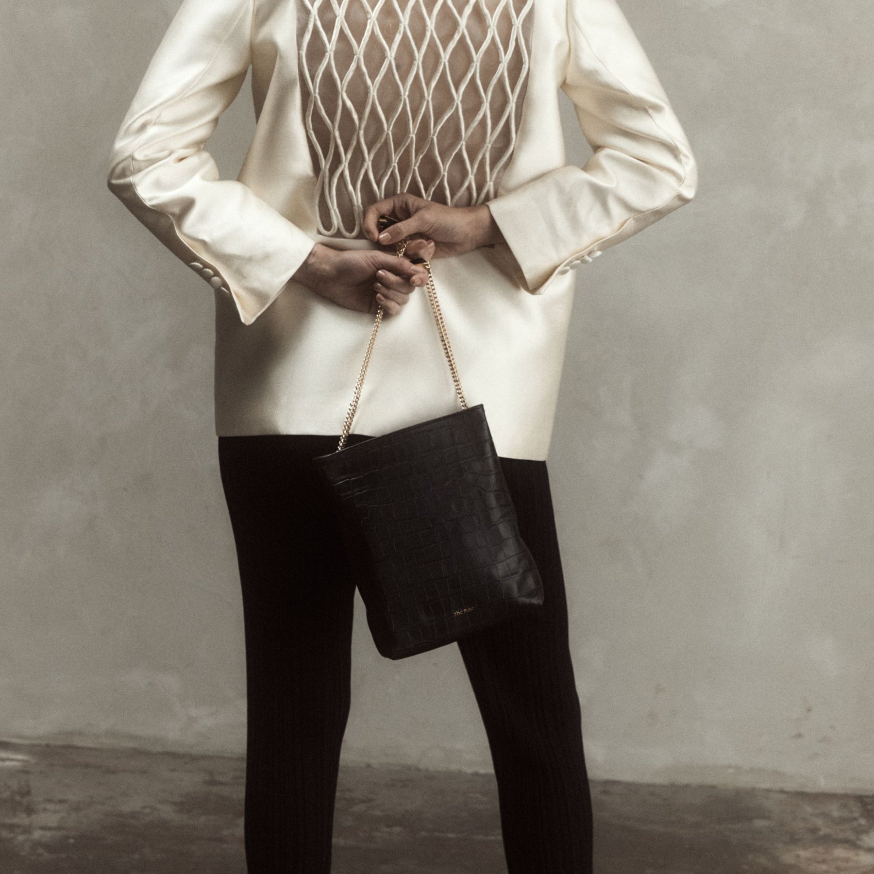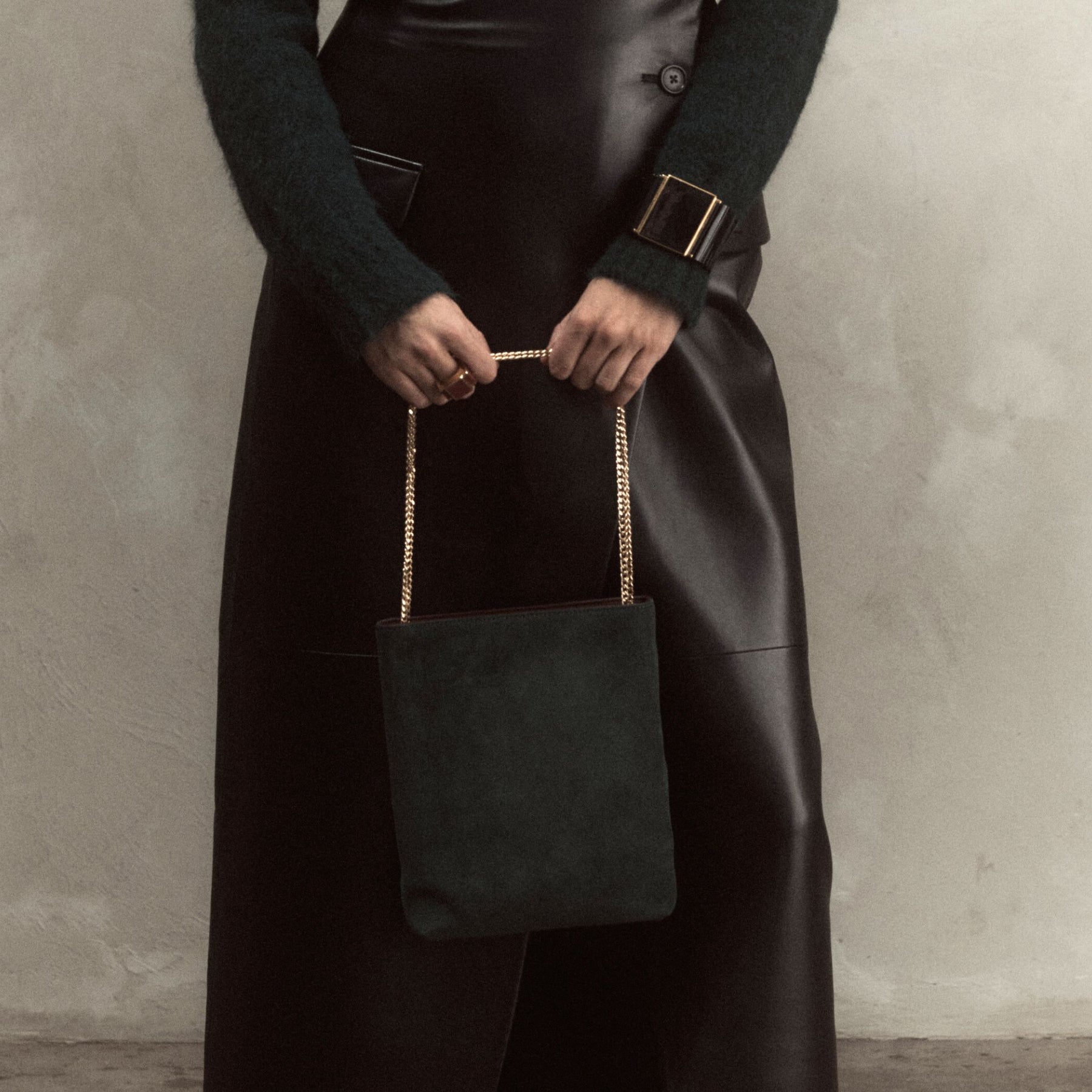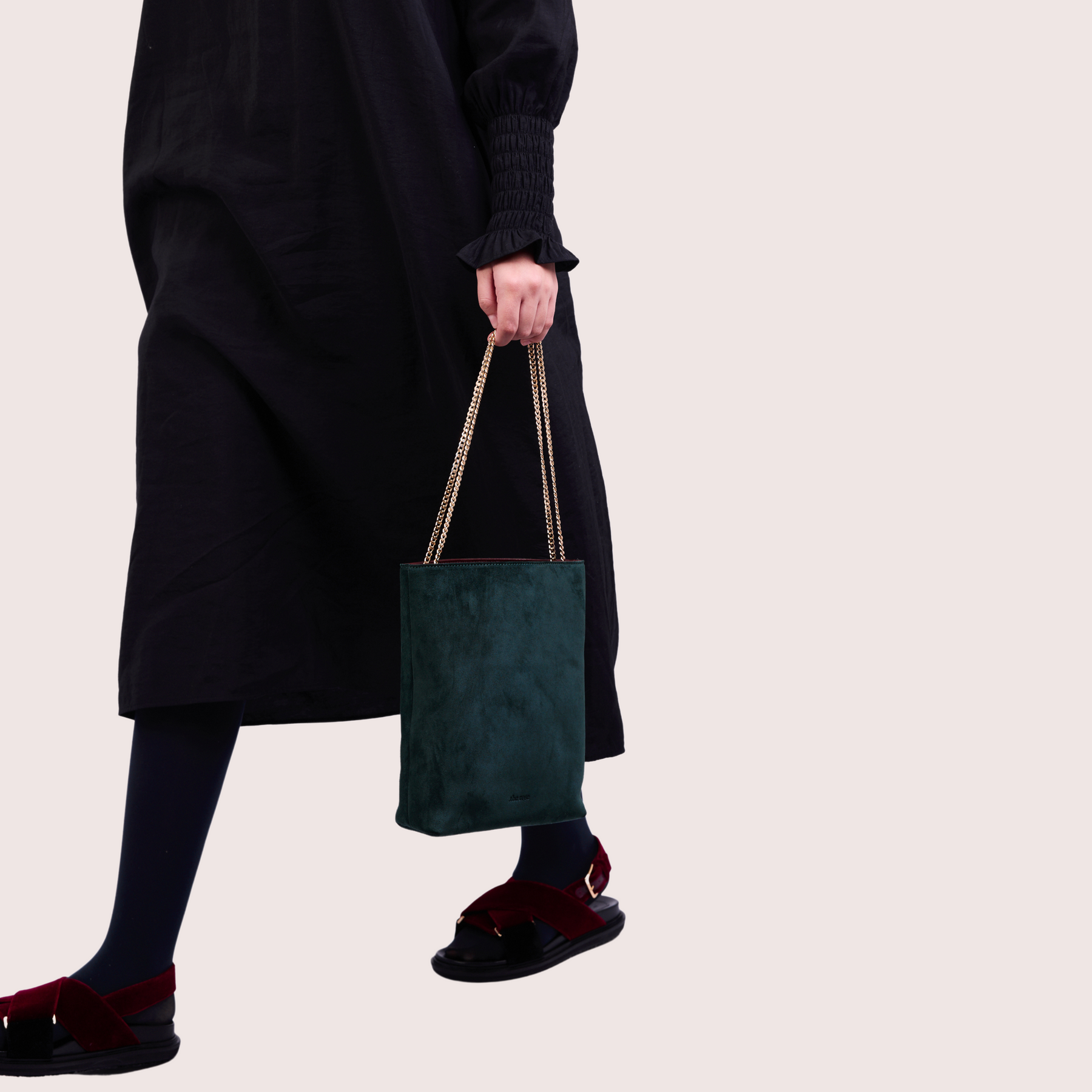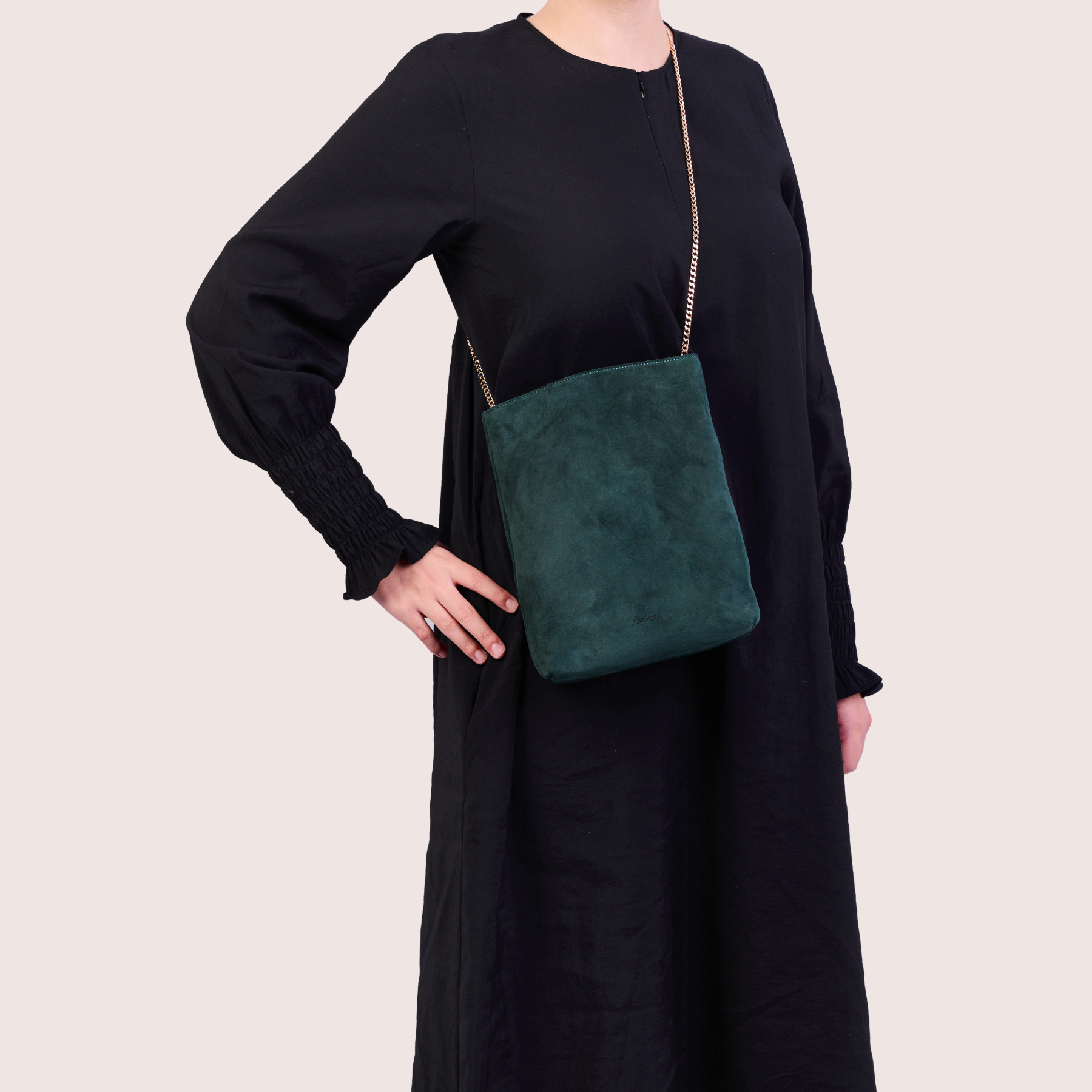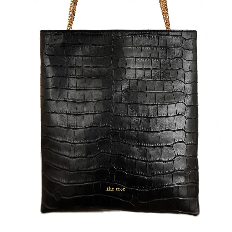 This satchel-style bag comes with a sliding Italian-made chain (110 cm), and adapts to your mood: worn crossbody, on the shoulder, or simply held by hand as a clutch — depending on the moment.