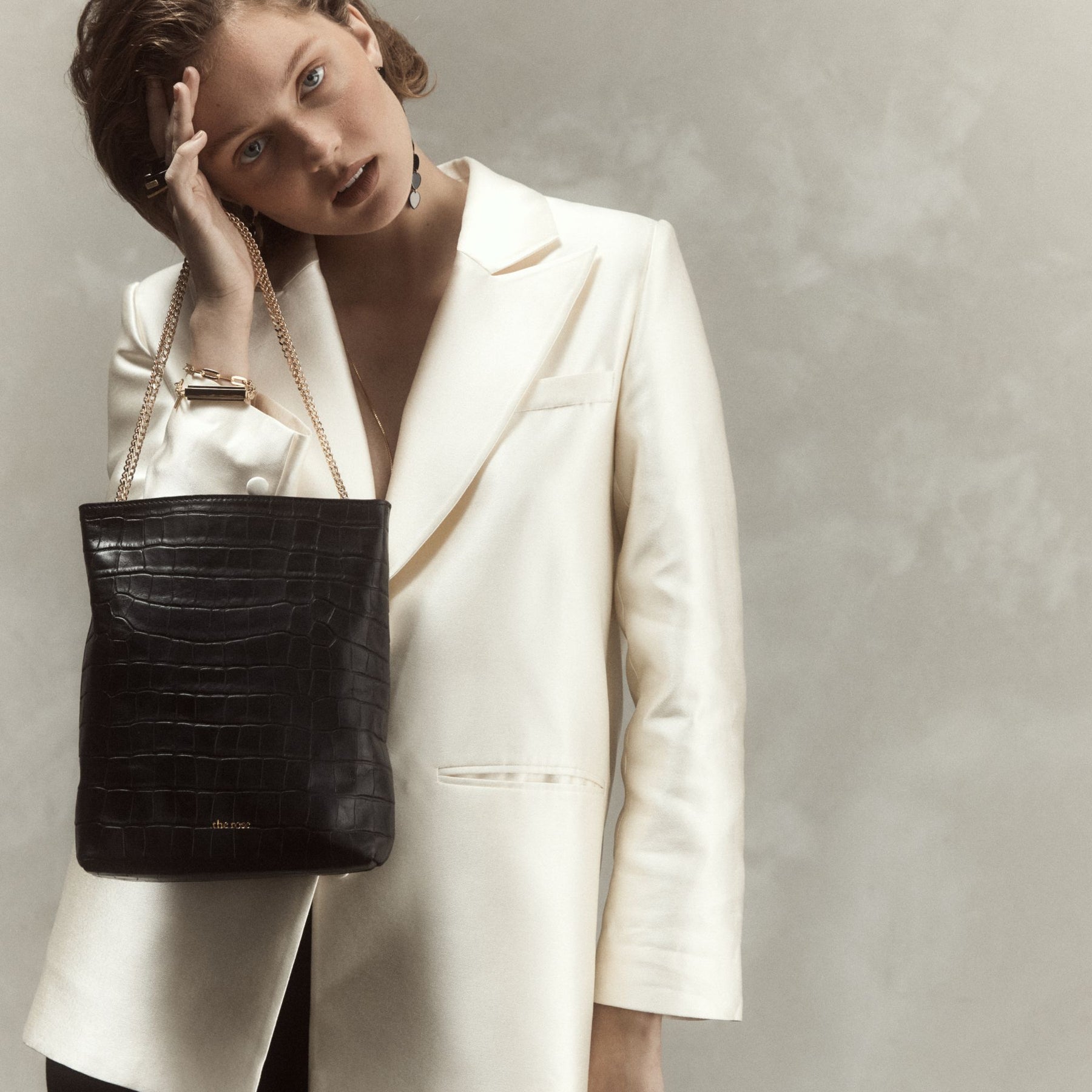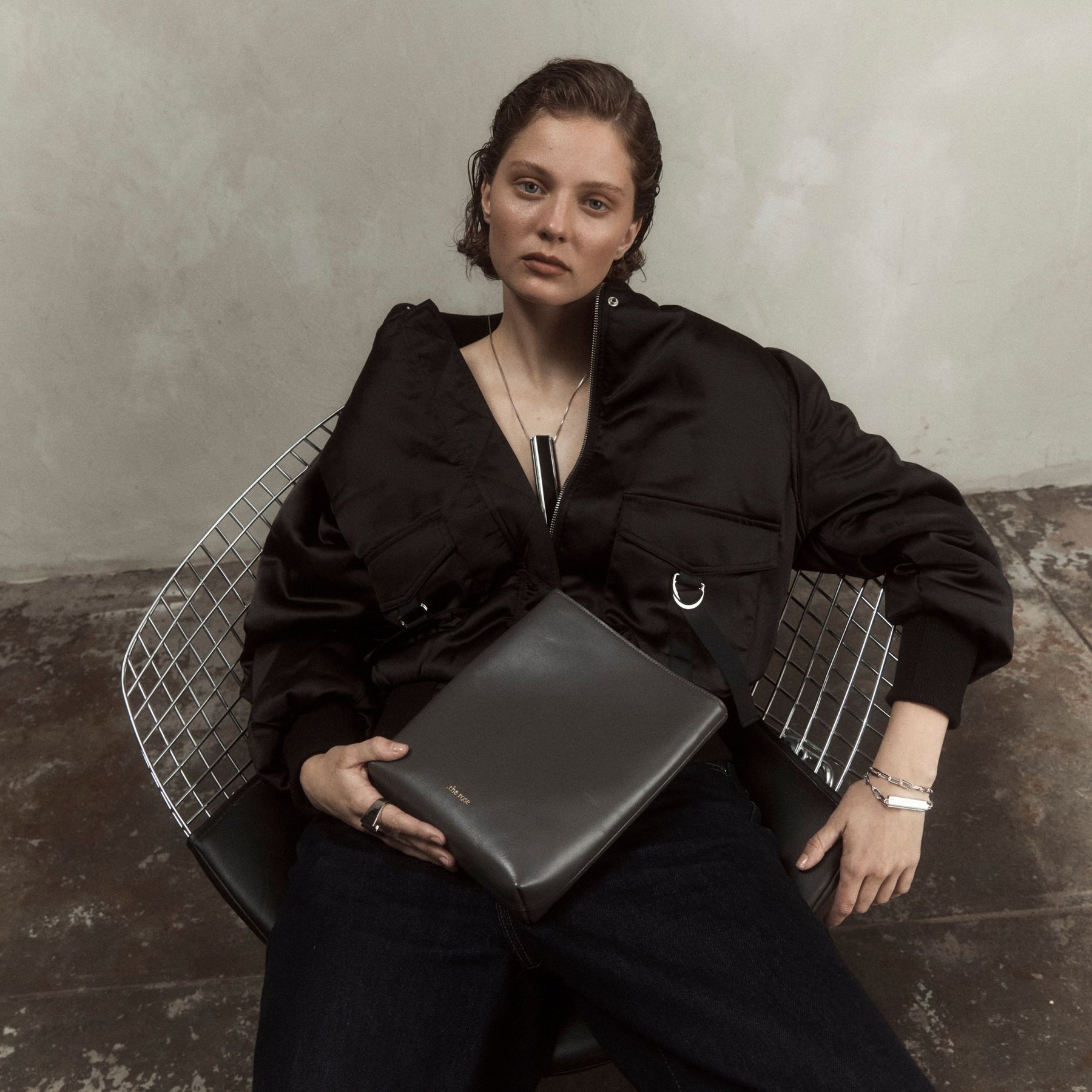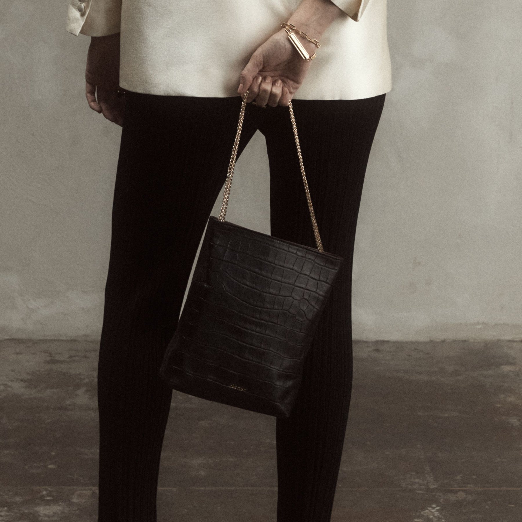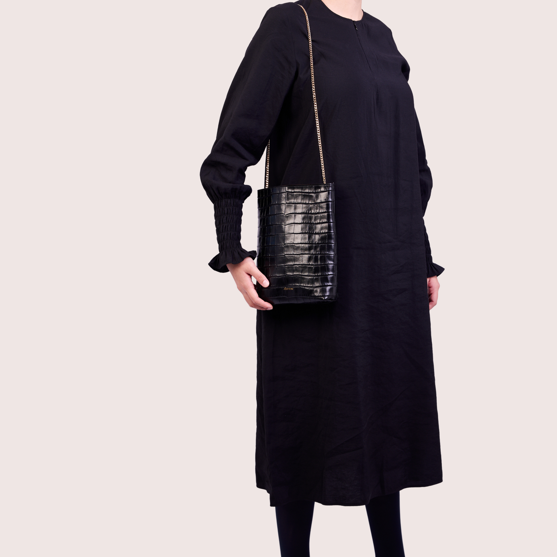 This satchel-style bag comes with a sliding Italian-made chain (110 cm), and adapts to your mood: worn crossbody, on the shoulder, or simply held by hand as a clutch — depending on the moment.